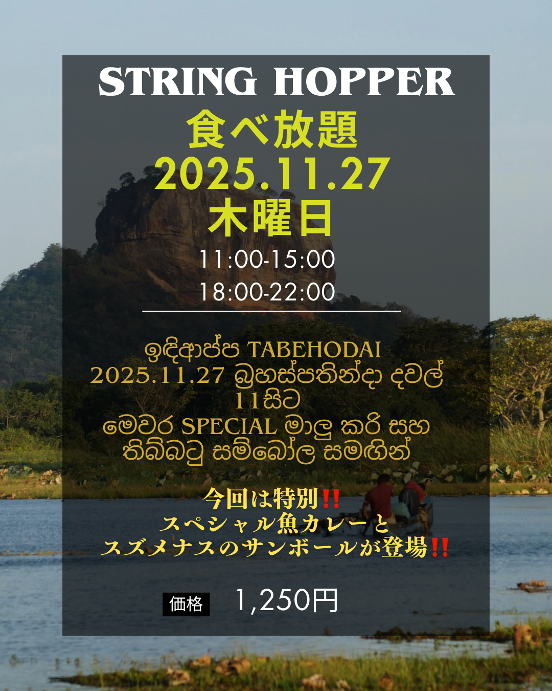 月に一度はメニューにないスリランカ料理のイベントを行っています。